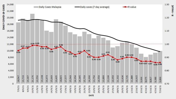 卫生总监丹斯里诺希山10月7日在脸书公布的数据显示,全国在10月7日新增9890宗确诊病例,冠病传染数值报0.86。