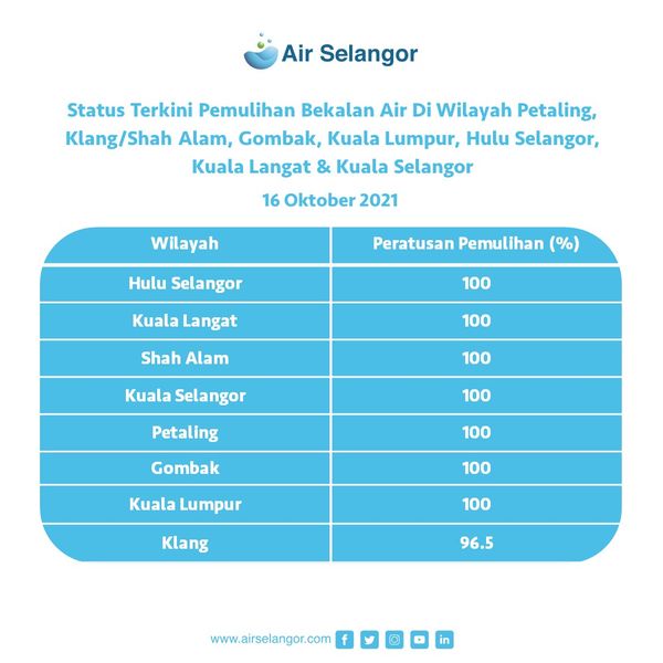 有关水供详情,包括近况、公共水喉或是商业取水站资讯,关注网站:hentitugas.airselangor.com;或浏览Air Selangor 社交媒体网站。