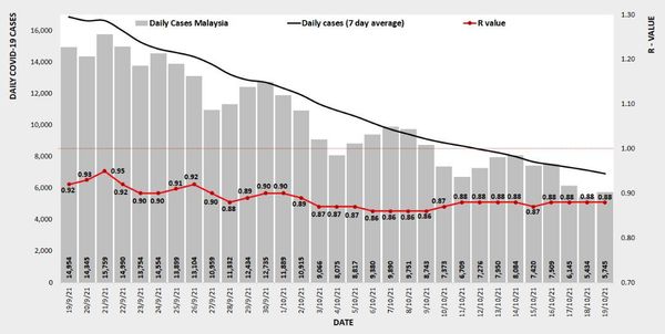 卫生总监丹斯里诺希山10月19日在脸书公布的数据显示,全国16日(周日)起,冠病传染数值已连续4天维持在0.88。