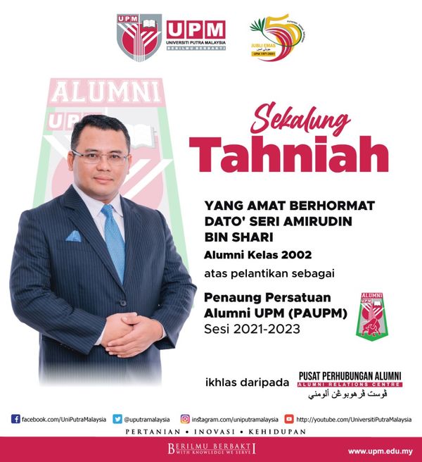 博特拉大学校友会公关小组今日在脸书贴文,祝贺阿米鲁丁的这项任命。