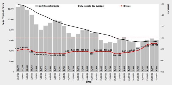(莎阿南30日讯)我国新冠肺炎单日确诊病例昨日新增6060宗,全国冠病基本传染数值(Ro)维持在0.95。