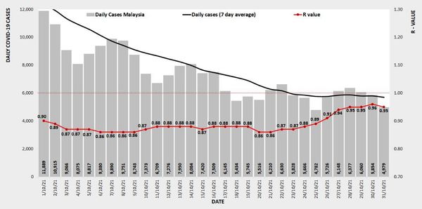 (莎阿南1日讯)我国的新冠肺炎单日确诊病例昨日新增4979宗,导致全国基本传染数值(Ro)微降至0.95。