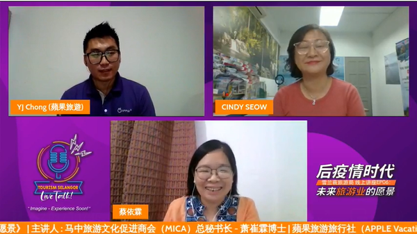 讲座的主题为《后疫情时代-未来旅游业的愿景》,主讲嘉宾还包括苹果旅游旅行社高级经理(旅游部)锺泳健,由雪州旅游局产业发展经理蔡依霖主持。