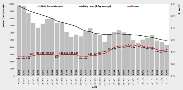 (莎阿南8日讯)我国新冠肺炎单日确诊病例昨日新增4343宗,创下近4个月来的新低,惟冠病全国基本传染数值(Ro)却微升至0.92。
