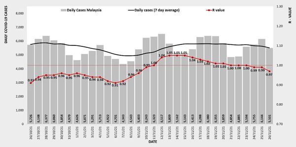 (莎阿南27日讯)我国新冠肺炎单日确诊病例昨日新增5501宗,全国冠病基本传染数值(Ro)报0.97。
