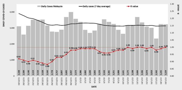 (莎阿南20日讯)我国新冠肺炎单日确诊病例昨日新增3229宗,令全国冠病基本传染数值(Ro)升至1.00。