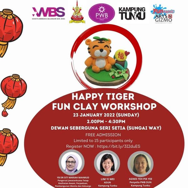 (莎阿南20日讯)大家听过以红包袋或插花做成新春装饰品,却鲜少知道以粘土一样可以做成装饰品。甘榜东姑区州议员林依威服务中心配合华人新年即将来临,将于周日(1月23日)在双溪威新村民众礼堂举办新春黏土制作一日班,免费教导民众如何戳土变成可爱的老虎。