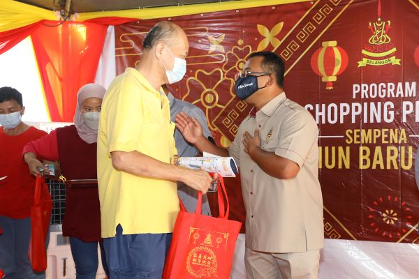 雪兰莪州务大臣兼双溪杜亚区州议员拿督斯里阿米鲁丁今日在选区,派发新春购物劵给华裔选民,各受惠者可获得100令吉购物券。