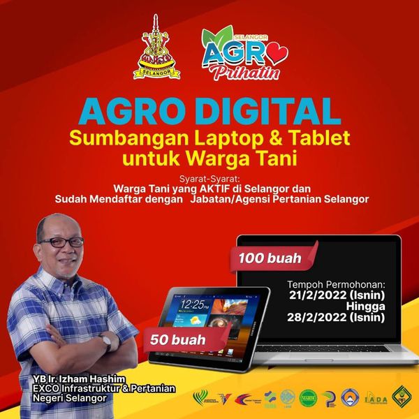 掌管基本建设及公共设施、现代农业及农基工业事务的雪州行政议员依兹汉表示,雪州政府专每月收入2000令吉或以下的农民,提供150架手提电脑或平板电脑,以减轻他们的负担。