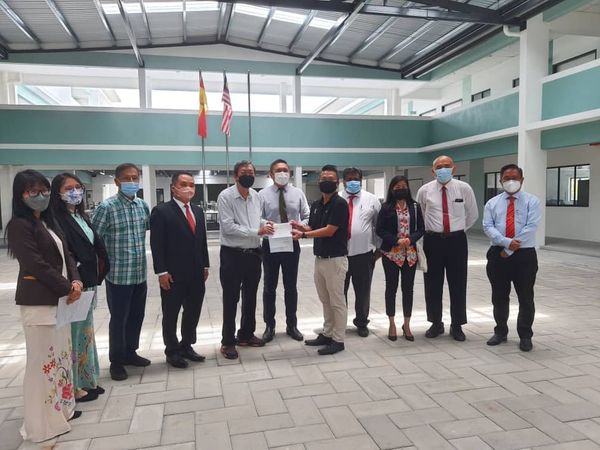 黄思汉3月18日下午,联同多位议员到位于瓜拉冷岳县的丽阳丰逸城(Tropicana Aman)的福隆港小学,移交捐款给该校董事部财政李忠伟。