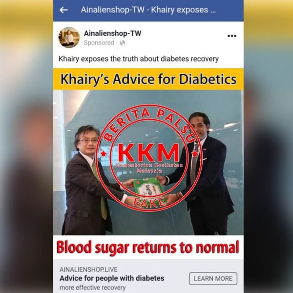 卫生部昨日在官方脸书发布文告澄清,有关脸书户头“Ainalienshop-TW ”张贴一张题为“雪糖恢复正常”的卫生部长凯里照片,是经过修改,在混淆民众。