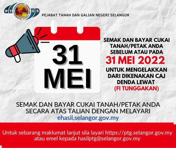 任何疑问和详情可以浏览https://ptg.selangor.gov.my,或电邮至hasilptg@selangor.gov.my查询。
