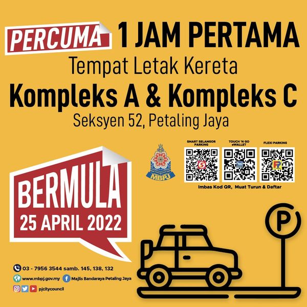 (莎阿南18日讯)八打灵再也第52区的八打灵再也市政厅综合大厦A座和C座(Kompleks A & C)停车场,即日起开放给民众免费停车一小时,市民受促勿错失良机。