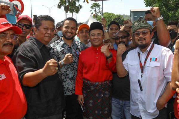 他于下午2时15分左右,在数名候选人陪同下,抵达斯里鹅唛柏灵殷礼堂。