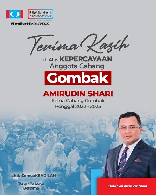 阿米鲁丁今日下午通过脸书贴文感谢全体公正党鹅唛区部的党员,有挂支持和信任将驱使他今后持续在鹅唛努力服务和工作。