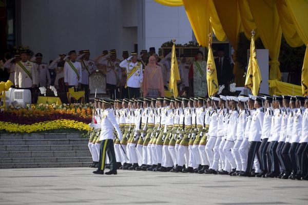 苏丹阿都拉检阅由马来皇家军团第18营指挥官法智里中校率领MAF三个联队的57名军官,以及847名人员组成的仪仗队。