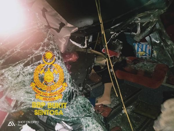 他接受《马新社》电访时说,此事于清晨3时30分左右发生,该巴士撞向同方向往南的拖格罗里尾部。