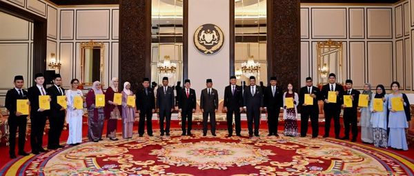(吉隆坡29日讯)国家元首苏丹阿都拉陛下今日在国家王宫,颁发国家元首奖学金给12名高等教育生。