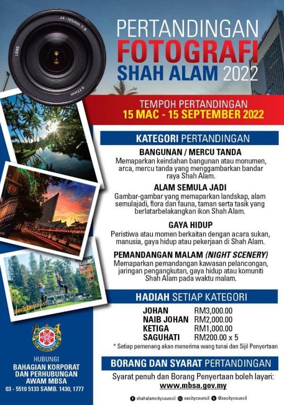 (莎阿南13日讯)由莎阿南市政厅(MBSA)主办2022年莎阿南摄影比赛,仍开放征收作品,总奖金高达2万8000令吉。