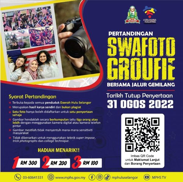 (莎阿南8日讯)乌鲁雪兰莪市议会配合国庆日举办“辉煌条纹团体自拍比赛”,诚邀民众踊跃参与以赢取300令吉冠军奖金!