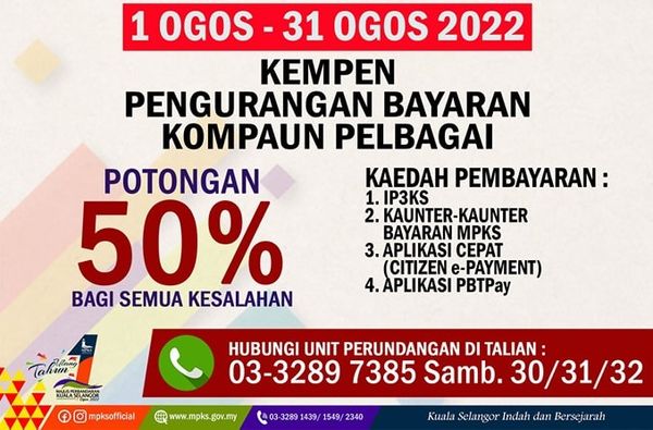 (莎阿南17日讯)瓜拉雪兰莪市议会配合升格一周年,在这国庆月针对当局发出的各重错误罚单,提供折扣高达50%。