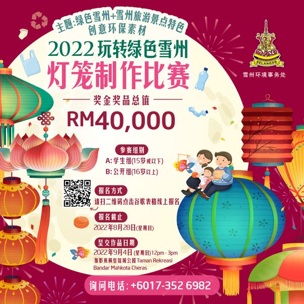 (莎阿南18日讯)2022年玩转绿色雪州灯笼制作比赛公开征求,以环保材料制作的创意灯笼,总奖金高达4万令吉。
