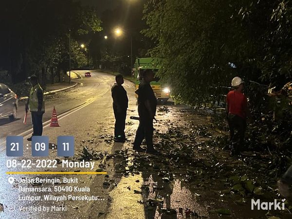 吉隆坡消防及拯救局发言人指出,武吉加拉的一间公寓前发生树倒事故,导致2辆车子受影响,其中1辆轿车被压坏。