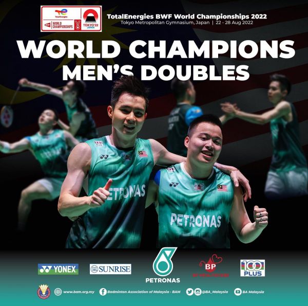 (莎阿南28日讯)雪兰莪州务大臣拿督斯里阿米鲁丁恭贺我国男双组合谢定峰与苏伟译在东京世界羽球锦标赛决赛中,以两局直接击败印尼组合,为我国夺得冠军。