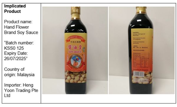 (新加坡/莎阿南3日讯)新加坡食品局检测发现来自大马的手揸花商标酱油皇的苯甲酸(benzoic acid)含量超标,已指示召回产品。