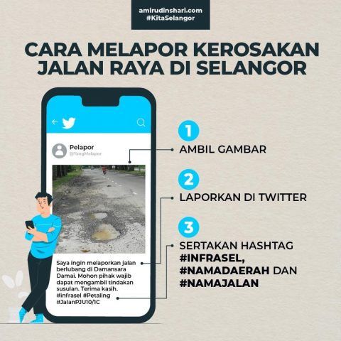 他说,民众只需拍下路况照片,上截到推特说明原因,然后标志#infrasel #daerah #namajalan即可。