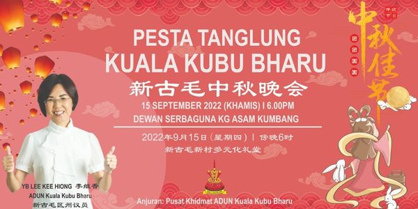 李继香在脸书贴文表示,中秋晚会当日傍晚6时在新古毛新村多元化礼堂举行,准备了美味佳肴和沙爹晚餐让民众品尝,同时邀请孩童参与灯笼游行。