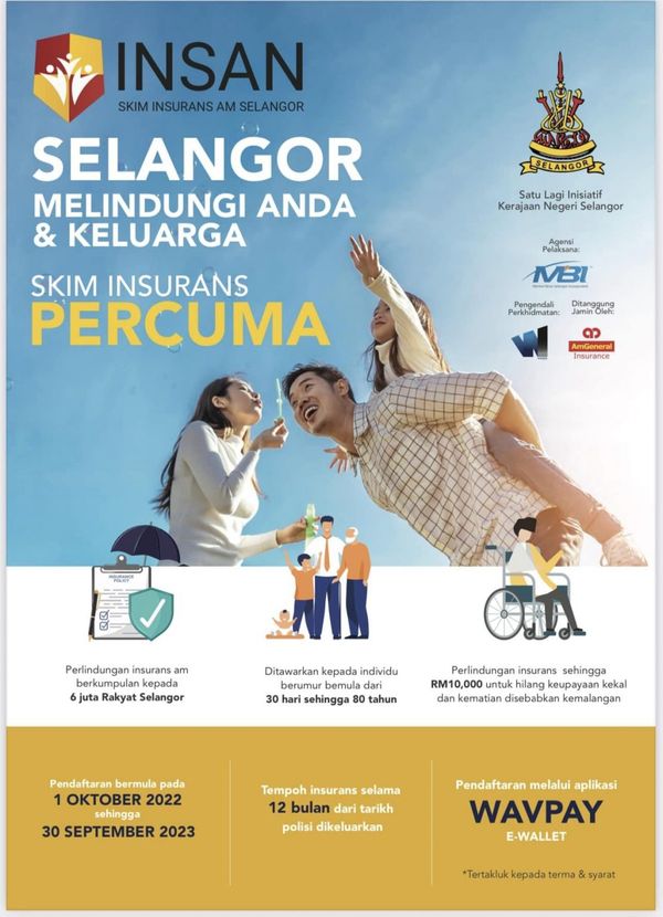 (莎阿南1日讯)由雪兰莪州政府赞助,贡献给600万人民的免费意外保险,民众即日起可通过Wavpay电子钱包正式登记,以享有意外死亡或永久残废的1万令吉保额。