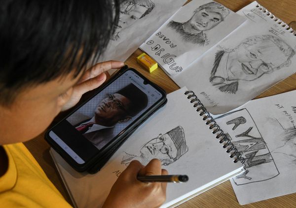 凯鲁妮莎说,迪亚莫哈末法迪在家中的5名孩子排行第四,透过YouTube网红,如Amamijan、Ali Haider和Devon Rondriguez的教学视频学习绘画,而且仅需15分钟至20分钟就完成人像素描画。
