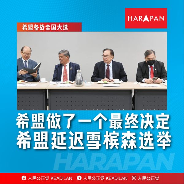 (莎阿南15日讯)希望联盟(HARAPAN)主席理事会宣布,雪兰莪、槟城和森美兰州维持原本决定,不提早解散州议会。
