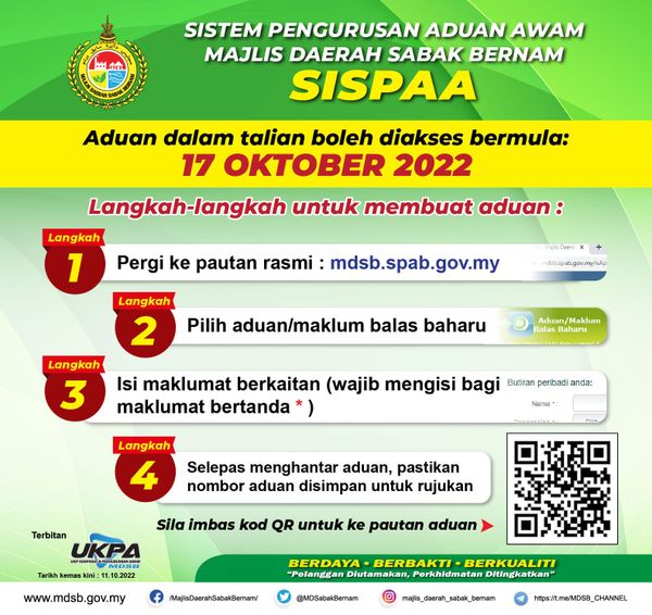 沙白县议会在官方脸书贴文说,这公共投诉管理系统(SISPAA-MDSB) 于10月17日推出,容易操作,有关步骤如下,