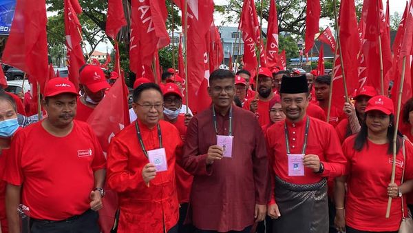 希盟候选人甘纳峇迪劳今日顺利完成提名手续,在支持者们的一片欢呼声浪下,开心的步出提名中心。