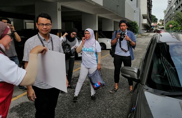 (八打灵再也15日讯)为了让更多人认识希望联盟(HARAPAN)的竞选标志,竞选团队随身带着模型选票,教导选民如何履行公民责任。