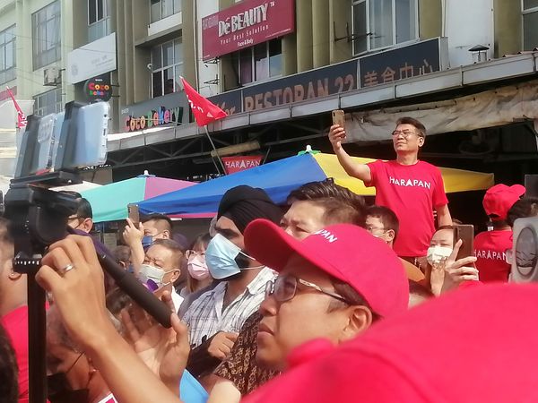 支持者在上午9时许就到来李金狮村健华茶餐室一带等候,各民族都有,人头攒动。