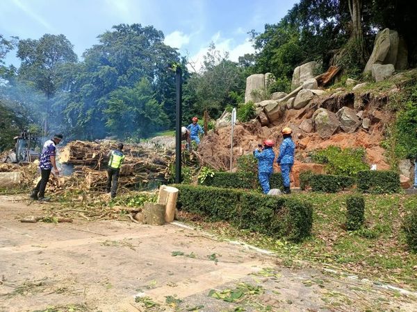 (莎阿南26日讯)瓜拉雪兰莪皇家山昨早一场大雨导致入口堤坡崩塌,暂时关闭。