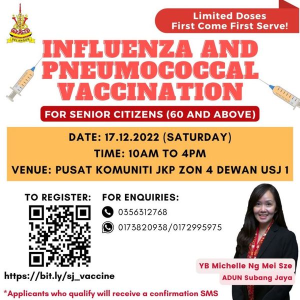 “由于疫苗数量有限,我们呼吁受惠群体透过 https://bit.ly/sj_vaccine 预先登记。符合资格者将收到短讯通知。”