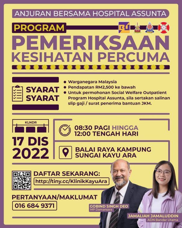 嘉玛丽雅在脸书贴文说,这项活动与八打灵再也阿松大医院合作,于上午8时30分至中午12时,在甘榜双溪卡尤阿拉民众会堂举行。