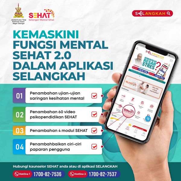 雪州公共卫生、和谐、妇女及家庭发展州行政议员西蒂玛丽雅在脸书贴文指出,心理健康计划(Sehat)2.0版本添加了数项新功能,包括新增的心理健康筛检、60 个心理教育视频、4个健康模块,以及增加用户显示功能。