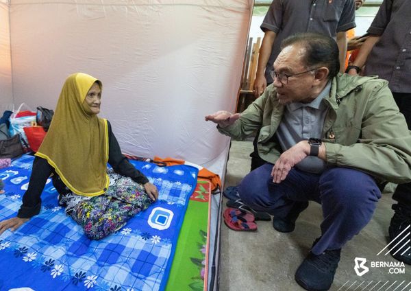 随著吉兰丹和登嘉楼水灾进一步恶化,首相拿督斯里安华今日下午抵达巴西马县东姑邦里玛拉惹国中的临时疏散中心,慰问灾黎。