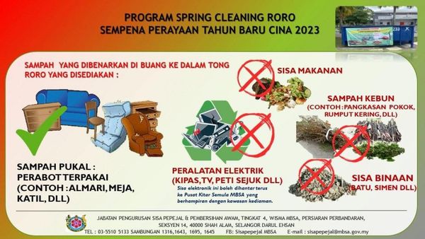 (莎阿南7日讯)莎阿南市政厅(MBSA)配合农历新年到来,在362个地点置放大型垃圾槽,回收大型垃圾。