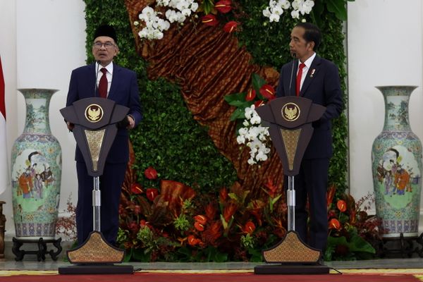安华说,在刚才与佐科威的会谈中,大马表明将专注于佐科威政府推行的下游计划和数码经济,以期帮助促进大马经济增长。