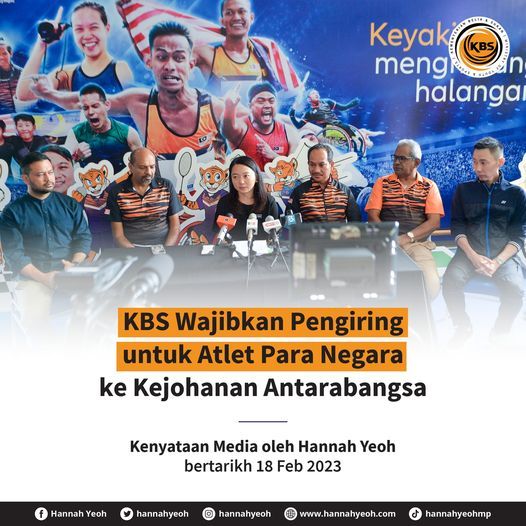 (吉隆坡18日讯)青年及体育部长杨巧双宣布,即日起实施强制国家残疾运动员须由陪护员陪同出国参赛的规定。