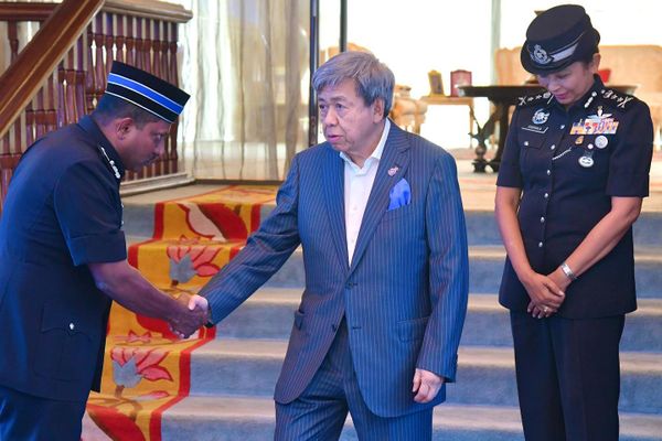 (莎阿南28日讯)雪兰莪苏丹沙拉夫丁本周一在莎阿南武吉卡央安皇宫,接见走马上任的雪州总警长拿督胡申奥马。