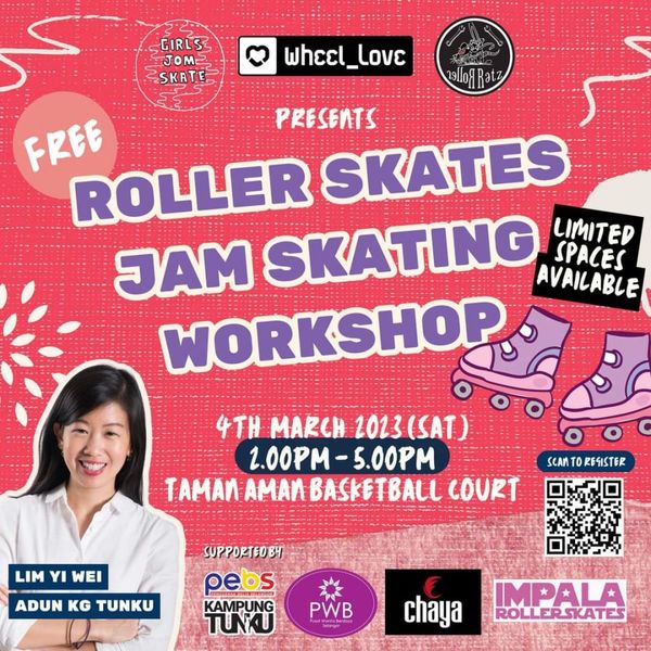 “女孩来滑轮、爱车轮、Roller Ratz”工作坊公开给35岁以下的女性参与,有兴趣者可在线上报名:https://tinyurl.com/KgTunkuSkate.
