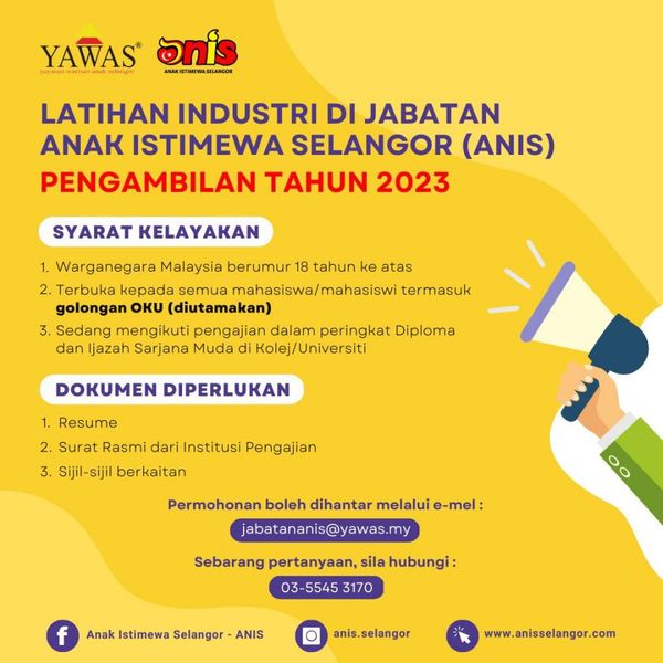 有兴趣者可连同简历、教育机构的正式信函和相关证书发送至电子邮件japatananis@yawas.my,如有任何疑问,请致电03-5545 3170。