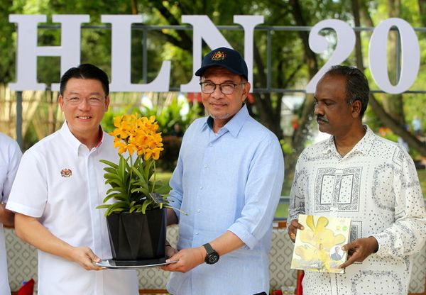 (怡保11日讯)配合今天在DR湖滨公园举行的2023年国家景观日庆典开幕式,一个新品种胡姬花以第10任首相拿督斯里安华命名为“PMX-安华蜻蜓万代兰”(Aranda PMX-Anwar)。
